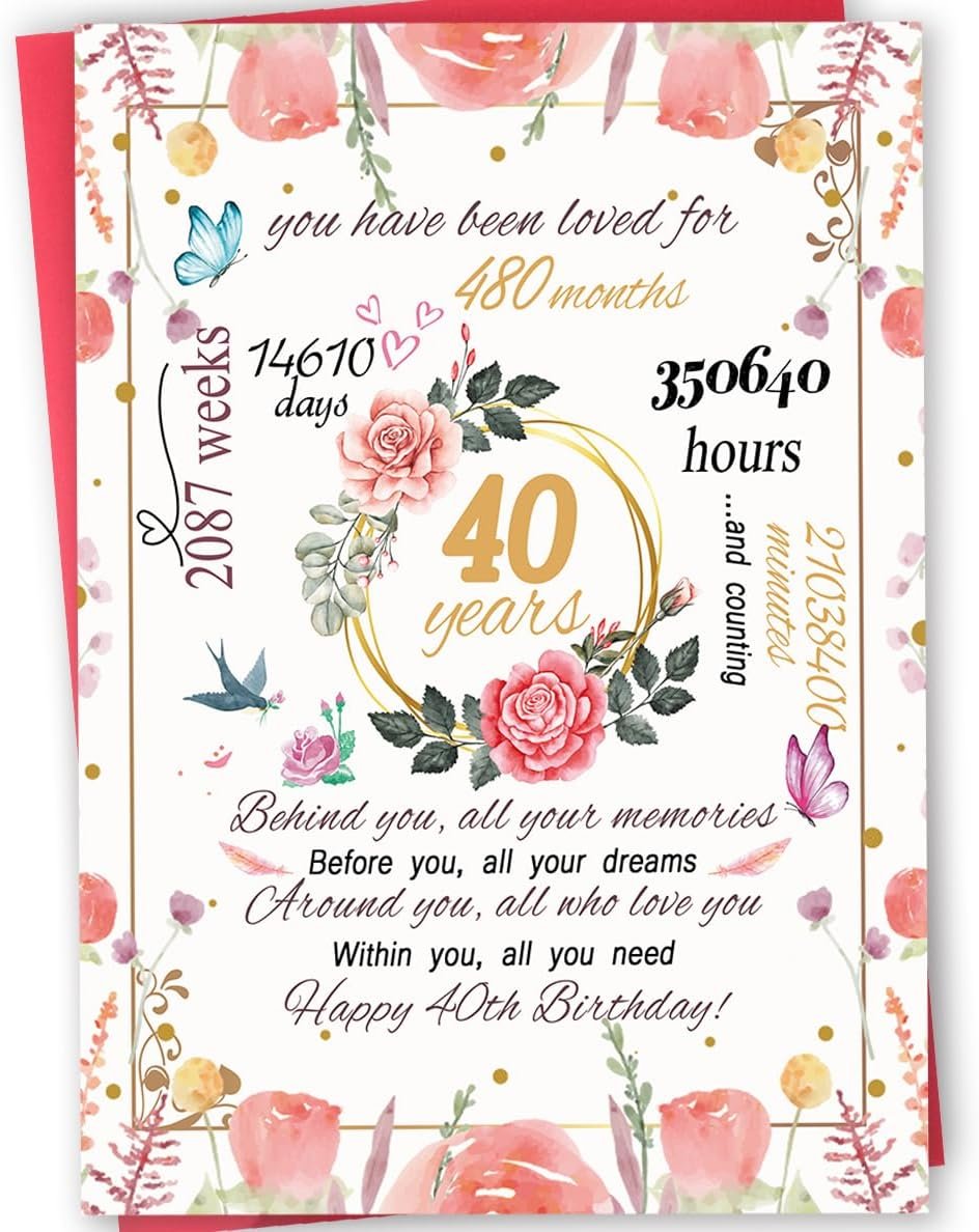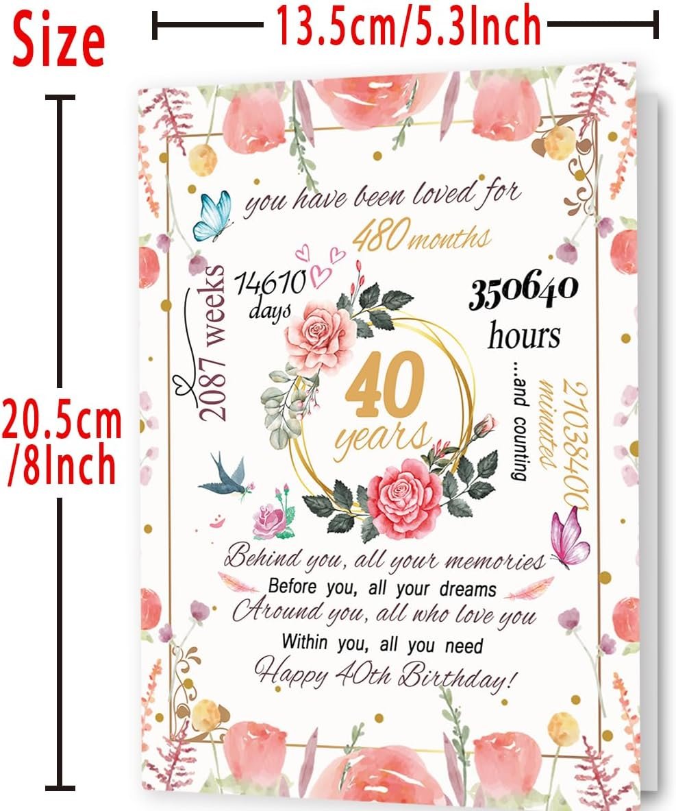 Funny 40th Birthday Card Gift for Women, Happy 40 Year Old Birthday Card for Mom Wife, Lovely 40th Birthday Decorations for Her