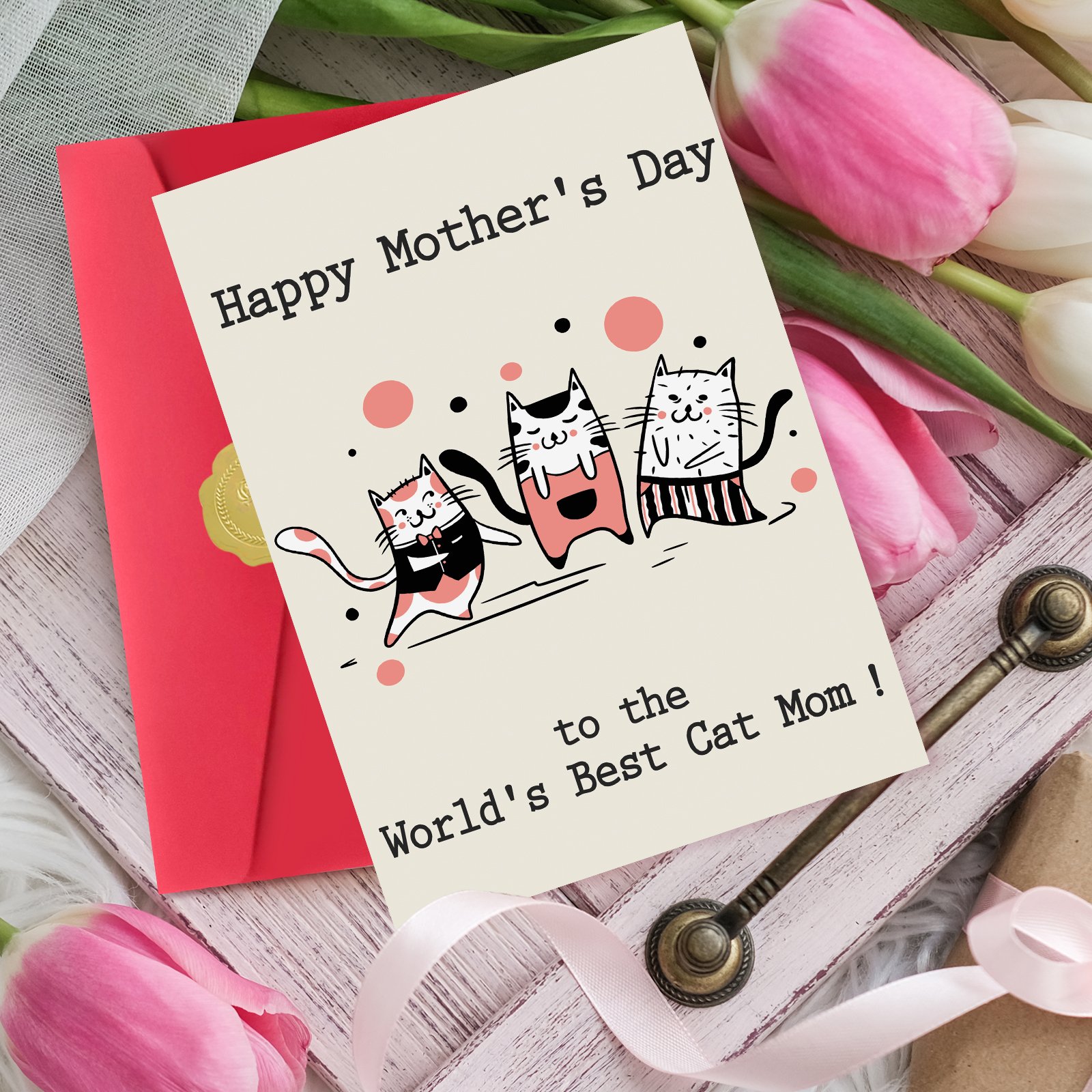 - Sweet Mother’s Day Card–This card is the perfect way to celebrate your cat mom on mother’s day and let her know how much you love!