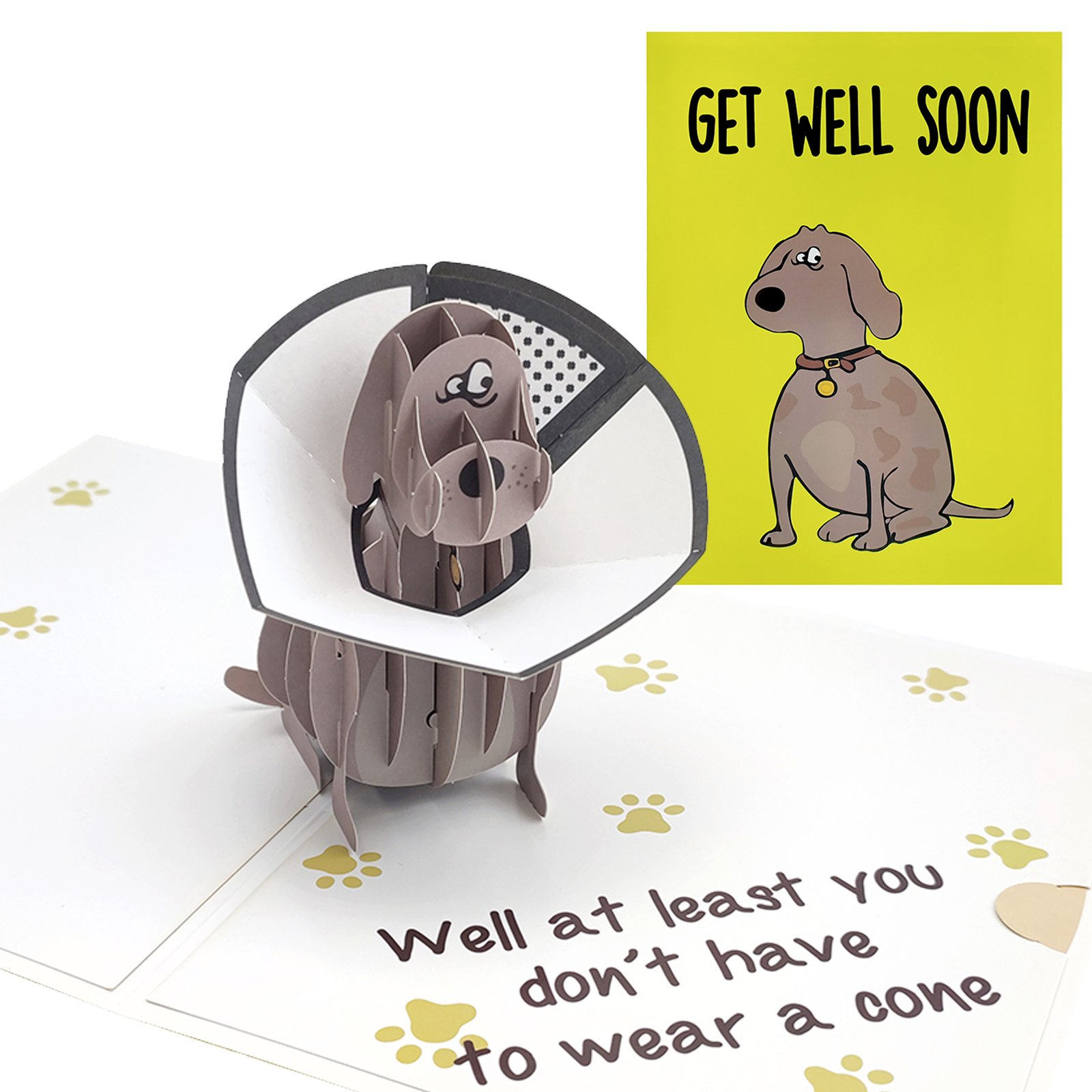 Funny Pop Up Get Well Soon Card, Humorous 3D Speedy Surgery Recovery Card for Friends Patient, Lovely Sympathy Cards for Men Women, At Least You Don’t Have to Wear A Cone, Pug Cone Card