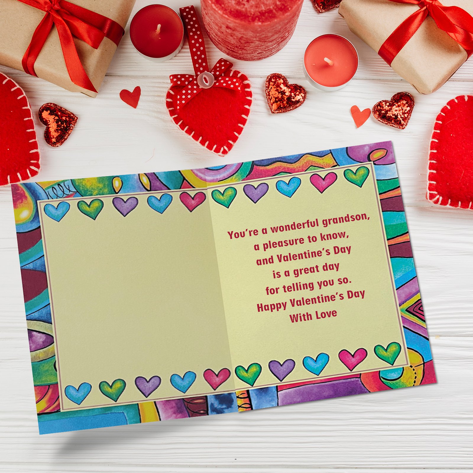 • Send your deepest Valentine’s wishes to your grandson with a card he’s sure to appreciate.